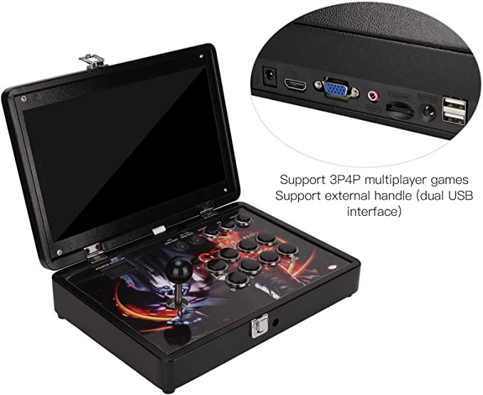 • [Small and Portable] Compact arcade game console, 14-inch screen, 1280 x 720P high-definition resolution, can be carried anywhere, easy to play anytime, anywhere.